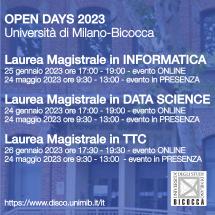 Open days 2023 Lauree Magistrali in Informatica, Data Science e TTC